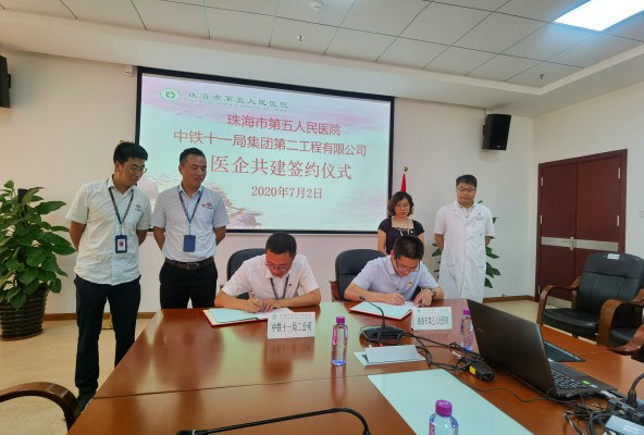 揚(yáng)醫(yī)者之美、 筑新格局黨建2020-07-02上午,中鐵十一局集團(tuán)第二工程有限公司珠海市鶴港二期項(xiàng)目部與珠海市第五人民醫(yī)院舉行醫(yī)企共建和黨企共建簽約儀式。珠海市第五人民醫(yī)院副院長(zhǎng)、黨委副書(shū)記黃裕存,紀(jì)委書(shū)記,黨辦主任白晶、及五院相關(guān)人員、項(xiàng)目黨工委...