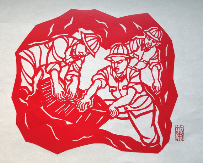 陳竹榮剪紙《英雄鐵道兵》