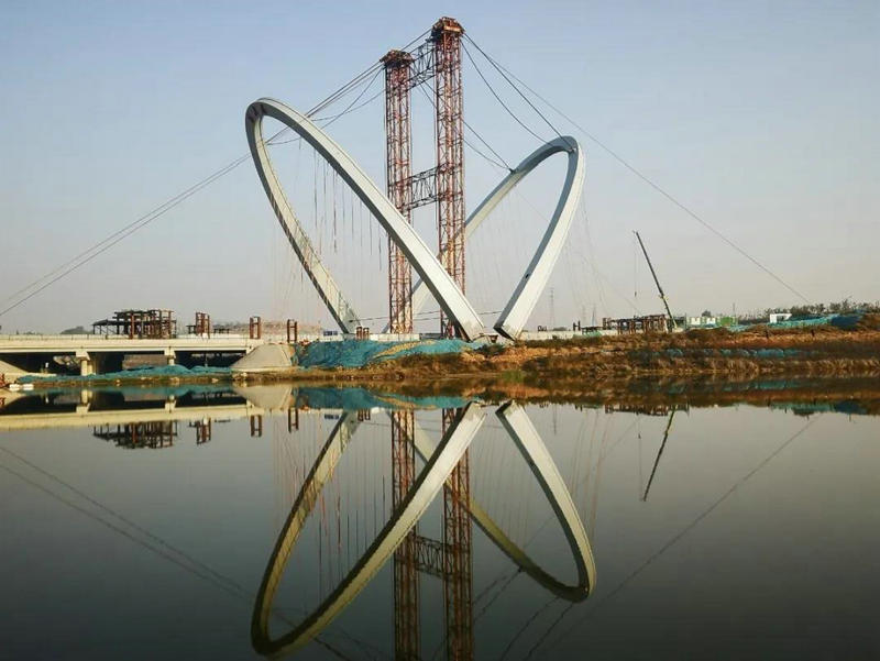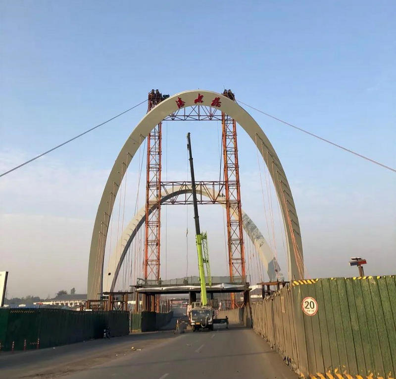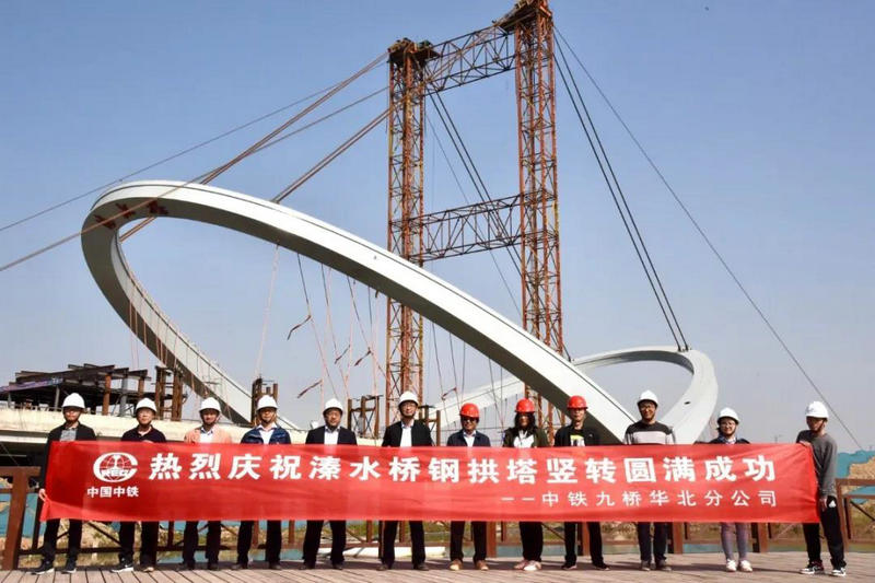 10月24日上午,隨著千斤頂將鋼拱塔拉向設(shè)計位置,標(biāo)志著由中鐵九橋華北分公司承建的新密溱水橋順利豎轉(zhuǎn)到位,成功合龍。至此,新密新添一座地標(biāo)性文化建筑。公司首次在新密溱水橋?qū)嵤?yīng)用國內(nèi)先進技術(shù)——斜拉橋雙斜拱塔對稱同步豎轉(zhuǎn)施工工法并取得圓滿成功,這是繼太原迎賓橋獨塔豎轉(zhuǎn)施工工法成功應(yīng)用之后的又一重大施工技術(shù)突破。