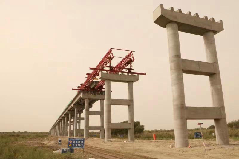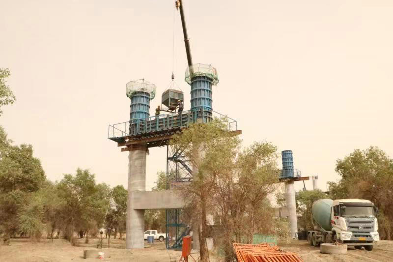 葉爾羌河特大橋全長2888米,最大墩高21米,共96跨,采用384榀箱梁結構,橫跨第三師圖木舒克國家級胡楊林公園和葉爾羌河,環(huán)水保要求高 、施工難度大,是圖昆公路關鍵節(jié)點工程。為加快施工進度和確保安全質量受控,項目部成立施工協(xié)調小組,討論制定完善的施工方案及施工計劃,在順利完成橋梁樁基施工的基礎上積極為后續(xù)作業(yè)創(chuàng)造條件,實現(xiàn)了墩柱施工、箱梁預制施工齊頭并進的良好局面。