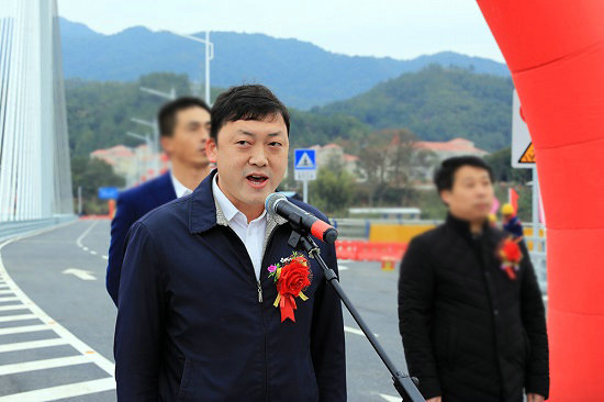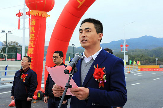圖四、上杭縣委常委、組織部長、汀江大橋及接線工程領(lǐng)導(dǎo)小組組長徐峰宣布通車。