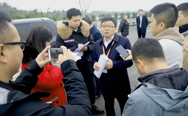 11月27日,由新華社、光明日報(bào)、中新社、中央電視臺、重慶電視臺、重慶日報(bào)、央廣網(wǎng)、華龍網(wǎng)、大渝網(wǎng)、上游新聞網(wǎng)等十多家媒體組團(tuán)采訪,為中國鐵建十五局集團(tuán)作為總承包單位之一的潼榮高速公路最后的沖刺加油鼓勁,為重慶首條被列為交通部綠色公路示范工程的創(chuàng)建把脈言歡。