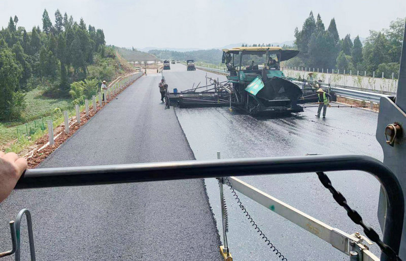 潼榮高速瀝青面層攤鋪進(jìn)行時