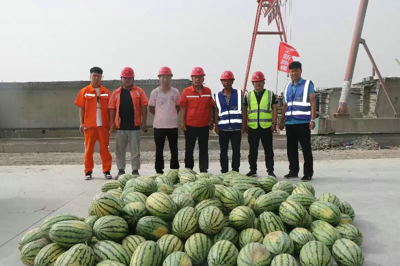 黨支部將采購的4600斤西瓜、甜瓜分發(fā)給參加圖昆項(xiàng)目建設(shè)的工友、項(xiàng)目管理人員,為炎炎夏日依然堅(jiān)守一線的職工們送去一份“清涼”