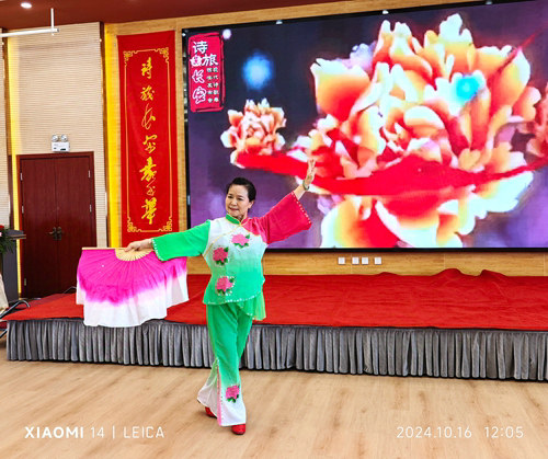 王海霞、白保存兩位學(xué)兵配合默契,主持文藝演出恰到好處,歌舞、獨(dú)唱、詩朗誦、男女二重唱、女聲小合唱、板胡獨(dú)奏、方言朗誦、即興情景劇等形式的節(jié)目一個(gè)接著一個(gè),異彩紛呈,為《不朽的軍魂·現(xiàn)代詩歌卷》的新書發(fā)布會(huì)起到了推波助瀾的作用。主持詞的開場(chǎng)白說:金秋十月,金風(fēng)送爽;鐵兵戰(zhàn)友,歡聚一堂。正如詩壇宿將邱光明戰(zhàn)友撰寫的楹聯(lián):“詩旅長安,攜漢風(fēng)唐韻,歌越千載,留幾段佳話傳華夏;情牽老鐵,唱云路星橋,志在四方,引一卷豪吟上碧霄!”八百里秦川歡迎你,奏一曲《渭水秋歌》;十三朝古都?xì)g迎你,唱一曲《山水長安》;陜西的鐵兵學(xué)兵歡迎你,問一聲戰(zhàn)友你好;西安的軍嫂兵妹歡迎你,擺一桌熱騰騰的油糕。最重終要表達(dá)的是:西安歡迎你!