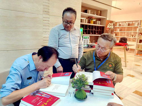 來自出席會(huì)議的老兵單位、三線學(xué)兵單位的代表和社會(huì)各界熱心的王紅旗、孫震、曹祜、陳家順、常揚(yáng)、朱經(jīng)建、蘇靈、李春芝等上臺(tái)接受了贈(zèng)書。