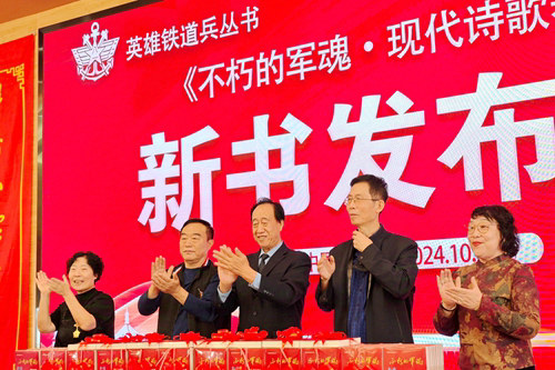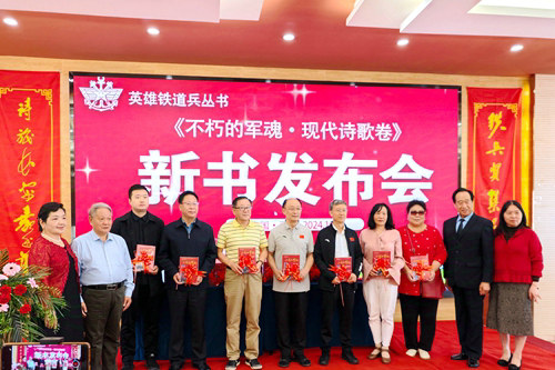 在出席新書發(fā)布會(huì)現(xiàn)場(chǎng)近百人的鐵道老兵、學(xué)兵、軍嫂和鐵二代的見證下,文創(chuàng)中心常務(wù)副主任、英雄鐵道兵叢書副總編、該書編委王林山戰(zhàn)友宣布新書揭幕?,F(xiàn)代詩歌卷主編李汪源;中國電影文學(xué)會(huì)常務(wù)理事、國家二級(jí)教授韓志晨;英雄鐵道兵叢書總策劃、著名詩人劉勝(遠(yuǎn)方);英雄鐵道兵叢書副總編鄭建平;軍嫂代表、鐵粉陳淑娟共同為《不朽的軍魂·現(xiàn)代詩歌卷》揭幕,霎時(shí),會(huì)場(chǎng)響起經(jīng)久不息的熱烈掌聲……