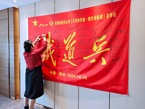 10月16日,按照英雄鐵道兵叢書《不朽的軍魂·現(xiàn)代詩歌卷》發(fā)布會(huì)流程正常進(jìn)行,大家期待的高光時(shí)刻,便是競(jìng)相一睹兩天前才從武漢趕印發(fā)來、并帶有墨香的英雄鐵道兵叢書首部詩集——《不朽的軍魂·現(xiàn)代詩歌卷》的靚麗,由此將揭開她神秘的面紗與大家見面。午餐后,便進(jìn)行了逛碑林、登長城游玩活動(dòng)。