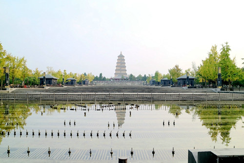大雁塔是樓閣式磚塔,塔身呈方形錐體,具有中國傳統(tǒng)建筑藝術(shù)的風(fēng)格。塔高64米,共七層,塔身枋、斗拱、欄額均為青磚仿木結(jié)構(gòu)。1961年,大雁塔被中華人民共和國國務(wù)院公布為第一批全國重點(diǎn)文物保護(hù)單位。