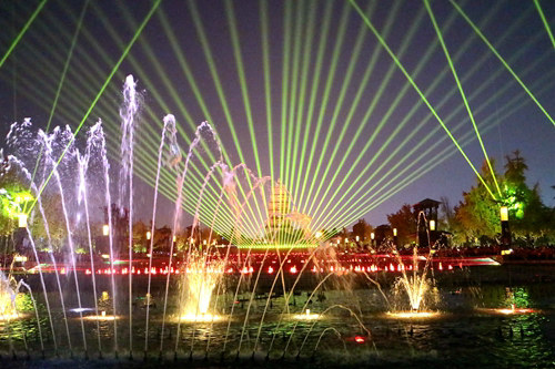 晚上7點(diǎn),是戰(zhàn)友們約定看大雁塔北廣場音樂噴泉的時(shí)間。大雁塔音樂噴泉,位于陜西省西安市大雁塔北廣場,是西安的標(biāo)志景觀之一,也是亞洲最大的音樂噴泉。