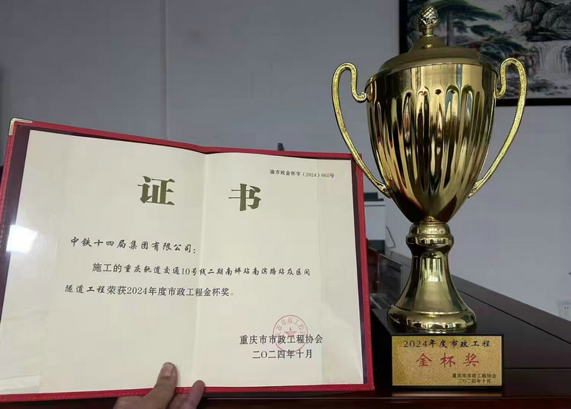 在重慶這座充滿活力與發(fā)展?jié)摿Φ某鞘兄?,軌道交通網(wǎng)絡(luò)如動脈般穿梭其中,連接著各個區(qū)域,推動著城市的高效運轉(zhuǎn)。中鐵十四局集團五公司重慶市軌道交通十號線二期南坪站南濱路站及區(qū)間隧道工程項目經(jīng)理部南坪站南濱路站及區(qū)間隧道工程,作為其中一顆璀璨的明珠,憑借其卓越的建設(shè)成果,榮獲重慶市市政工程協(xié)會“2024 年度市政工程金杯獎”,這一榮譽背后,是無數(shù)建設(shè)者的智慧與汗水,是技術(shù)創(chuàng)新與質(zhì)量把控的完美結(jié)合。------中鐵十四局集團五公司重慶軌道交通 10號線二期南坪站南濱路站及區(qū)間隧道工程榮獲重慶市市政工程“金杯獎”