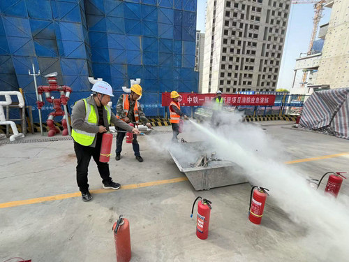 隨后在項(xiàng)目部施工現(xiàn)場開展了消防應(yīng)急演練活動(dòng),現(xiàn)場演示了滅火器、消火栓等消防器材的正確使用方法。員工們踴躍參與實(shí)踐操作,親身體驗(yàn)了滅火的過程,進(jìn)一步掌握了消防器材的使用技巧。