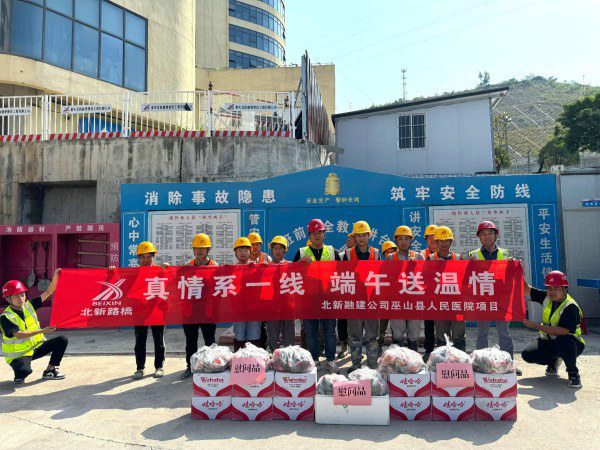 巫山訊(通訊員 陳拉)粽葉飄香時,濃情端午至。在傳統(tǒng)佳節(jié)端午節(jié)來臨之際,北新路橋集團北新融建公司巫山縣人民醫(yī)院早陽分院二期建設(shè)項目部組織開展“真情系一線,端午送溫情”慰問活動,為堅守崗位的100余名農(nóng)民工兄弟送上節(jié)日關(guān)懷,讓奮戰(zhàn)在施工一線的建設(shè)者們感受到“家”的溫暖。