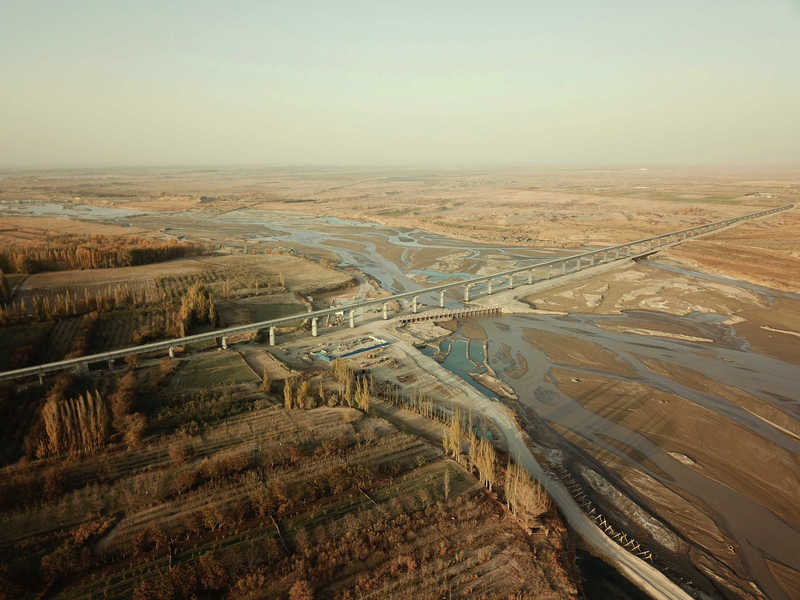 和若鐵路(和田市至若羌縣)全長825.476公里,線路設(shè)計時速120公里。和若鐵路是西部地區(qū)重要的區(qū)域路網(wǎng)干線,也是新疆“四縱四橫”鐵路主骨架的重要組成部分。和若鐵路與南疆鐵路、格庫鐵路共同構(gòu)成長達(dá)2712公里的環(huán)塔克拉瑪干沙漠鐵路環(huán)線,是新疆繼去年北疆鐵路環(huán)線形成之后的又一鐵路環(huán)線,該工程自2019年5月開工,2022年6月通車運(yùn)營,結(jié)束了和田地區(qū)洛浦、策勒、于田、民豐等縣和巴州且末縣等地不通火車的歷史,同時將南疆地區(qū)人民群眾出疆里程縮短了一千多公里。