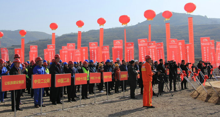中鐵二十一局三公司董事長(zhǎng)莊乾理(左一)、副總經(jīng)理魏惠民(右二)應(yīng)邀參加開工儀式