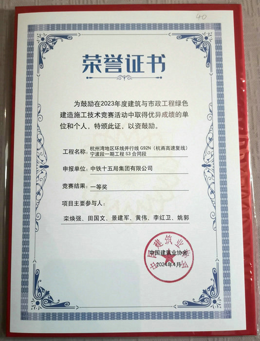 鐵路工程建設(shè)網(wǎng)訊(特約通訊員呂奎元 通訊員黃韜)6月3日,中國建筑業(yè)協(xié)會(huì)在北京召開大會(huì),通報(bào)表彰2023年度建筑與市政工程綠色建造施工技術(shù)競賽一二三等獎(jiǎng)項(xiàng)目232個(gè),中鐵十五局集團(tuán)二公司杭甬高速復(fù)線寧波一期S3合同段榮獲一等獎(jiǎng)。 杭甬高速濱?;ネㄈ?李全平攝