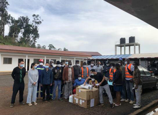 推送疫情防護知識、有關(guān)政策法規(guī)、疫情情況通報。海外疫情爆發(fā)初期,喀麥隆當(dāng)?shù)胤酪呶镔Y嚴(yán)重缺乏,急需國內(nèi)支持。分公司物資部多方聯(lián)系溝通,于3月20日采購了 1 萬個醫(yī)用口罩、10 把測溫槍及部分藥品,并于采購當(dāng)日發(fā)貨。但由于種種原因,至 4 月初,物資還卡在廣州未發(fā)往目的地。分公司物資部部長急項目所急,趕往廣州同航空貨運公司交涉發(fā)貨,經(jīng)過重重曲折,歷時整整 36 天,至 4 月中旬,防疫物資到達(dá)項目部,為項目抗疫注入了新的動力,為項目安全生產(chǎn)給予有力保障。