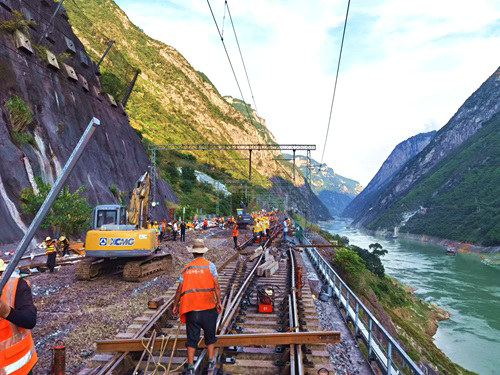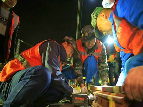 為確保此次封鎖施工圓滿完成,在站改前期,項(xiàng)目部多次召開專題會(huì)議,指派各級(jí)部門負(fù)責(zé)人提前前往現(xiàn)場(chǎng)勘察,最終根據(jù)調(diào)查結(jié)果,果斷采取了既有鐵路與水路同時(shí)運(yùn)輸人員物資的方針策略,并不斷組織協(xié)調(diào)施工進(jìn)度,優(yōu)化細(xì)化施工方案,科學(xué)調(diào)度施工運(yùn)輸。同時(shí)為全面保障施工及人身安全,項(xiàng)目部與行車部門、設(shè)備管理單位簽訂了施工安全配合協(xié)議,對(duì)所在影響施工的設(shè)施進(jìn)行了逐一調(diào)查;封鎖施工前一天對(duì)作業(yè)人員進(jìn)行詳細(xì)分工,并對(duì)所有作業(yè)人員進(jìn)行詳細(xì)的技術(shù)交底,最終有效確保了該站站場(chǎng)改造工程的安全和暢通。