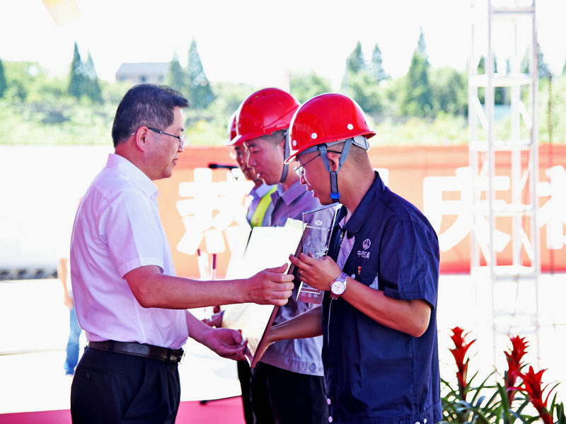 當日,出席參加軌通活動的人員有:浙江省交通集團軌道交通管理部副總經理陳明,浙江杭海城際鐵路有限公司黨委書記、董事長董衛(wèi)國和總經理言建標、中鐵三局集團華東區(qū)域常務副指揮長張弘鵬、中鐵三局集團線橋工程有限公司副總經理歐陽飛飛等相關單位的負責人?;顒又校越舜順I(yè)主單位致辭,表揚了杭海城際鐵路全體參建將士的辛勤付出與努力,對中鐵三局線橋公司始終保持昂揚向上并按期完成施工任務的積極態(tài)度給與充分肯定,望在今后施工中勇創(chuàng)新的佳績。張弘鵬代表中鐵三局施工單位做了講話,杭海城際鐵路如期實現(xiàn)全線軌通離不開杭海公司的正確領導和出色的管理,更離不開各單位對中鐵三局線橋公司的大力支持,我們將繼續(xù)發(fā)揚“勇于跨越 追求卓越”的中鐵精神,樹三局形象品牌。隨后,杭海城鐵公司董事長董衛(wèi)國為施工單位頒發(fā)了全線軌通獎牌及獎杯。