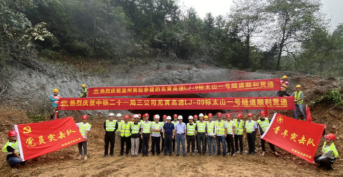 圖為建設者慶祝隧道貫通 為順利打通太山1號隧道,項目部精心策劃,科學組織,制定切實可行的施工方案和各項保障措施,堅持按規(guī)范要求施工,在確保安全質量的前提下,搶抓施工進度。在隧道施工中,由黨員突擊隊、青年突擊隊打頭陣,采用臺階法開挖,嚴格執(zhí)行“先探測、管超前、短進尺、弱擾動、強支護、快封閉、勤量測”的原則,在各級領導的關懷和幫助下,取得了全線最長隧道率先貫通的階段性勝利,順利完成了蕪黃高速項目辦下達的“縣縣通”節(jié)點目標任務,為2021年順利通車打下了堅實的基礎。