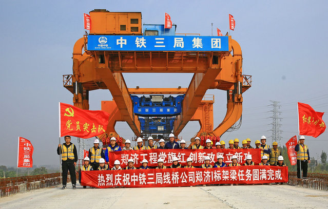 本報(bào)濮陽訊(通訊員 劉延?xùn)| 王富慶 王博)10月31日上午,隨著最后一榀900噸箱梁緩緩落至清豐特大橋1070 #墩至1069#墩上,標(biāo)志著中鐵三局線橋公司圓滿完成了鄭濟(jì)高鐵濮陽段Ⅰ標(biāo)全部架梁任務(wù),實(shí)現(xiàn)了由箱梁架設(shè)向軌道鋪設(shè)的工序轉(zhuǎn)換,吹響了鄭濮段鋪軌的號(hào)角。