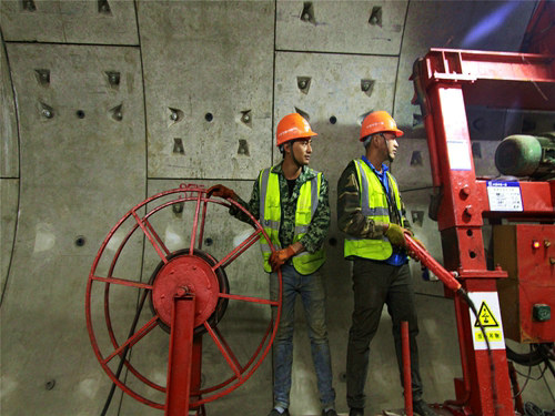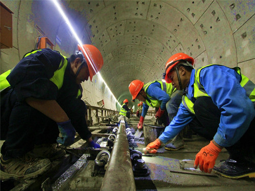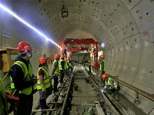 ?。ㄗT帥)10月27日凌晨時(shí)分,城市的萬家燈火逐漸熄滅,但中鐵一局集團(tuán)昆明地鐵2號(hào)線項(xiàng)目部的施工工地上卻燈火通明,轟鳴陣陣,40余名作業(yè)力量正在隧道內(nèi)忙著進(jìn)行混凝土澆筑、道床預(yù)鋪等施工任務(wù)。
