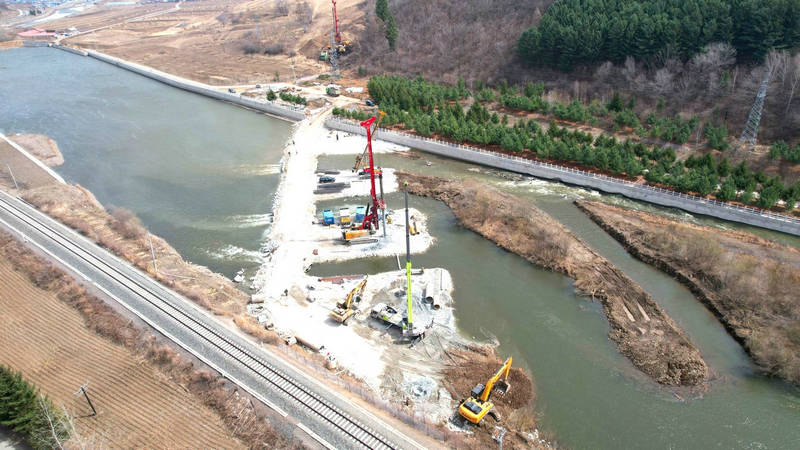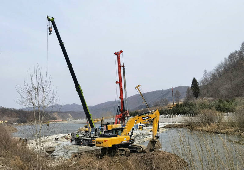 該橋先后跨越渾白鐵路、縣道X096及雙河三級電站庫區(qū)。其中1#橋墩坐落于山坡上,下方為X096縣道。2#-3#橋墩之間跨越既有渾白鐵路,3#-7#橋墩處于雙河三級電站庫區(qū)的涉水區(qū),需要利用6000立方米石料在水中先行筑島,改移河道后方可開工建設(shè)。面對工期緊迫、地質(zhì)條件差、周邊環(huán)境復雜、跨越既有線施工安全風險高等不利因素,中鐵二十三局集團沈白高鐵項目部把保證工程安全和質(zhì)量做為重中之重,加大人財物等資源的投入力度,不斷優(yōu)化施工組織設(shè)計。將采取集中優(yōu)勢兵力打殲滅戰(zhàn)的辦法,晝夜不停、連續(xù)作戰(zhàn),全力以赴搶進度,確保在三個月內(nèi)完成3#-7#涉水橋墩施工,突破制約工程進度的瓶頸。為鉆孔樁、承臺、墩身,以及后續(xù)的軌道鋪設(shè)施工創(chuàng)造條件。同時,他們將嚴把跨越及鄰近既有線作業(yè)安全關(guān),嚴格執(zhí)行作業(yè)標準和有關(guān)卡死卡嚴制度,確保渾白鐵路大動脈運輸?shù)慕^對安全。
