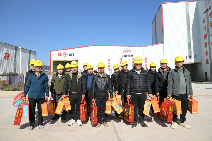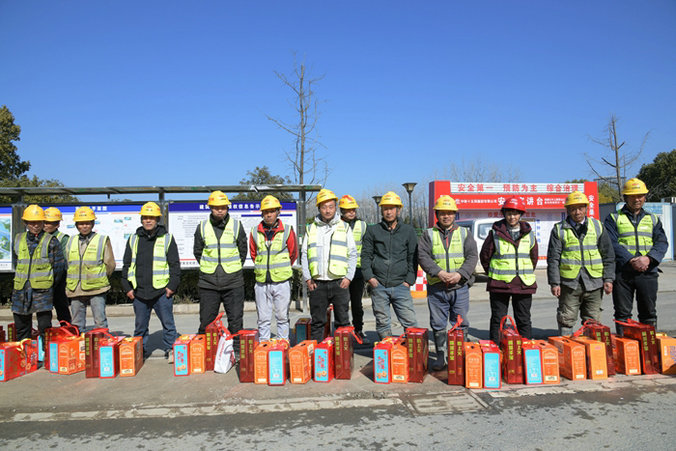 根據(jù)業(yè)主要求和項(xiàng)目春節(jié)期間總體安排,常山江航電天馬、招賢樞紐照常施工,拌合站正常生產(chǎn)混凝土。天馬樞紐導(dǎo)流墻B段、泄洪閘底板拆模,進(jìn)行下一段導(dǎo)流墻、底板綁扎鋼筋籠、安裝鋼模,以及消力池、護(hù)坦布網(wǎng)、立模、澆注等工序作業(yè)。閣底、白虎灘樞紐工地機(jī)械設(shè)備、工程材料,鋼筋大棚不同型號(hào)的鋼材原材料、半成品和成品加工件需要看守。為了讓堅(jiān)守崗位的90多位農(nóng)民工度過一個(gè)溫馨、歡樂、祥和、幸福的春節(jié),有“家”的感覺,公司副總經(jīng)理兼常山江航電樞紐項(xiàng)目黨支部書記、項(xiàng)目負(fù)責(zé)人黃偉、執(zhí)行經(jīng)理陳良兵等班子成員帶上豬肉和王老吉、猴頭菇餅干、三只松鼠堅(jiān)果大禮包等禮盒,分別前往4個(gè)社區(qū)農(nóng)民工中噓寒問暖,將豐富的禮物送到他們手中,祝大家新年快樂、家庭幸福、萬事順意! 豐盛的年貨 李小亞攝