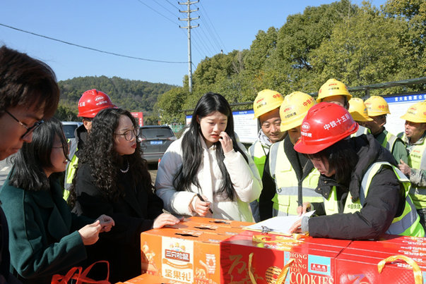 鐵路工程建設(shè)網(wǎng)訊 春節(jié)前夕,中鐵十五局常山江航電樞紐項(xiàng)目部為春節(jié)堅(jiān)守崗位照常施工的90多位農(nóng)民工送去“三件套”慰問品和新春的祝福,讓他們心滿意足地過年。 簽字領(lǐng)取“三件套”年禮 馬靈攝