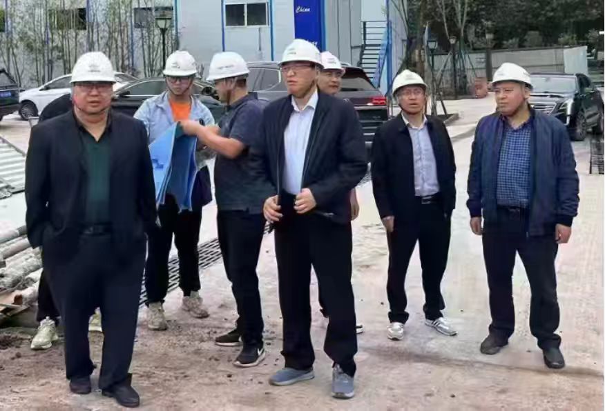 總承包部指揮長(zhǎng)李兵(左1)、黨支部書記王向平(左2)、副指揮長(zhǎng)李燕(右2)、工程管理部經(jīng)理鄧林義(右2)在現(xiàn)場(chǎng)巡查督導(dǎo)