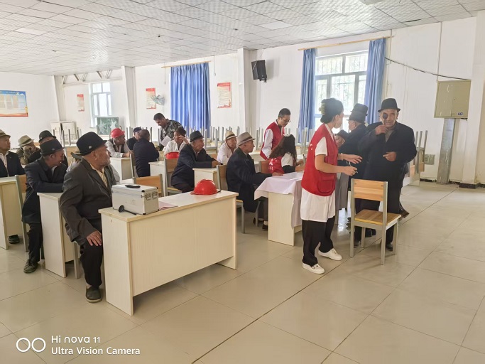 義診當(dāng)天,天還未完全亮,阿滿眼科醫(yī)院的醫(yī)療團(tuán)隊(duì)便早早抵達(dá)活動(dòng)現(xiàn)場(chǎng)。他們迅速分工協(xié)作,有條不紊地搭建起臨時(shí)診療區(qū)域,擺放好視力表、眼壓儀、眼底鏡等專業(yè)設(shè)備。盡管現(xiàn)場(chǎng)條件相對(duì)簡(jiǎn)陋,但醫(yī)療專家們始終熱情飽滿,以嚴(yán)謹(jǐn)細(xì)致的專業(yè)態(tài)度投入到診療工作中?;顒?dòng)開(kāi)始后,前來(lái)咨詢、檢查的村民絡(luò)繹不絕,從白發(fā)蒼蒼的老人到活潑可愛(ài)的孩童,大家都有序排隊(duì)等候。為保障現(xiàn)場(chǎng)秩序,依納克村工作隊(duì)隊(duì)員主動(dòng)上前協(xié)助,一邊引導(dǎo)村民排隊(duì),一邊幫助專家完成信息登記、病史詢問(wèn)等前期工作,讓診療流程更加高效順暢。