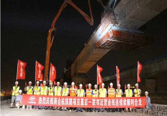 8月2日清晨,施工現(xiàn)場傳來捷報(bào),中鐵建大橋工程局集團(tuán)三公司商合杭鐵路項(xiàng)目最后一聯(lián)鄰近營業(yè)線連續(xù)梁成功合龍,結(jié)束了近500個(gè)日夜的奮斗,圓滿完成管段內(nèi)所有鄰近營業(yè)線連續(xù)梁施工。