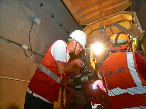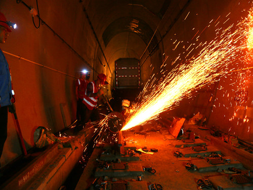 (譚帥)7月6日清晨7時許,在渝懷鐵路涪秀二線在建的新大田坳隧道里,隨著一臺移動閃光焊軌機(jī)噴出的一道道火花,兩根長500的鋼軌牢牢地焊接到了一起,標(biāo)志著該條鐵路涪陵至中嘴段無縫線路焊軌、鎖定施工接近尾聲。