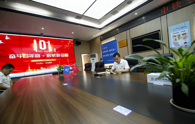 中鐵三局線橋公司第五分公司黃黃項目”迎七一“主題黨日道德講堂活動現(xiàn)場