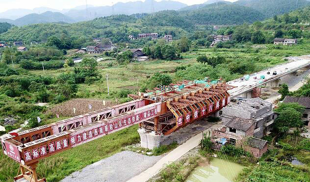 中鐵十八局集團(tuán)重黔高鐵6標(biāo)移動(dòng)模架橋梁施工現(xiàn)場(chǎng)( 田緣圓 攝)