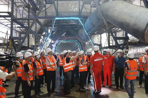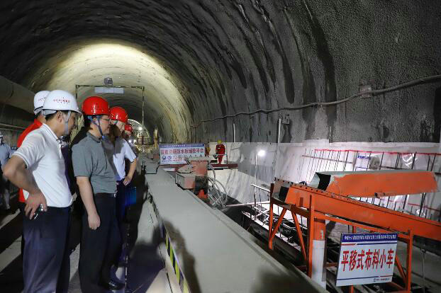 中鐵十八局集團(tuán)重黔高鐵6標(biāo)隧道施工平移式布料小車、邊墻防水板鋪掛平臺(tái)觀摩(孔凡虎 攝)
