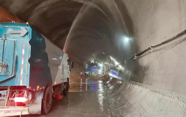 中鐵十八局集團(tuán)重黔高鐵6標(biāo)隧道襯砌養(yǎng)護(hù)清掃一體車作業(yè) (孔凡虎 攝)