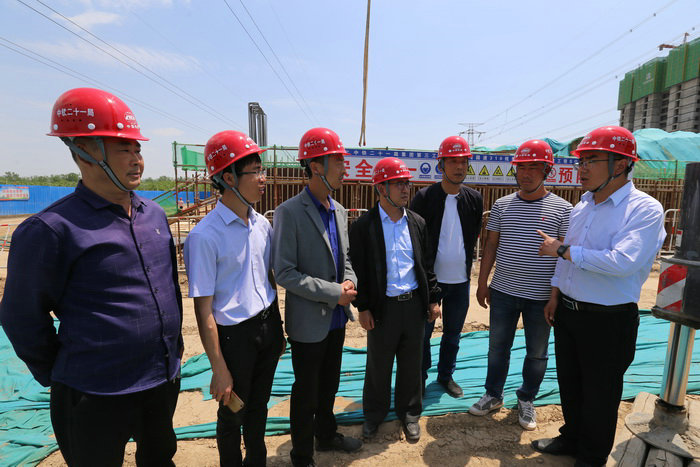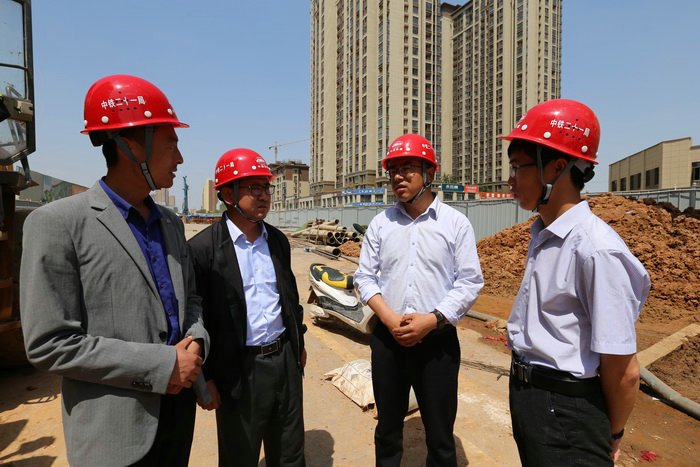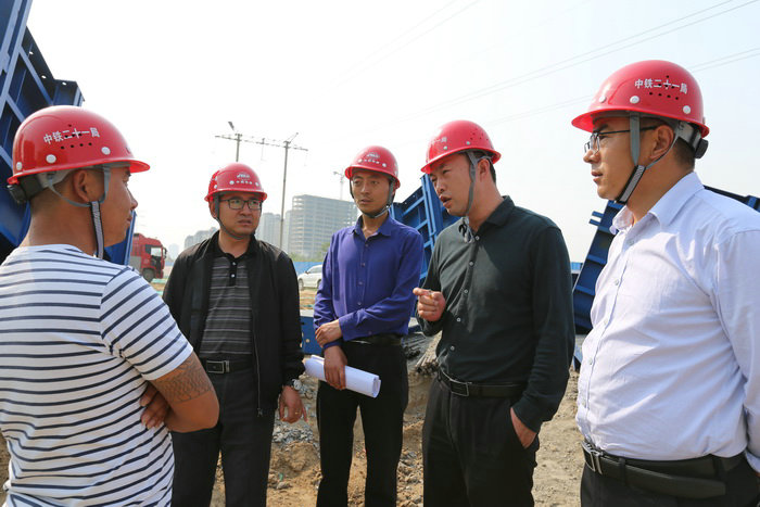 圖為項目部領(lǐng)導(dǎo)與現(xiàn)場技術(shù)人員交談