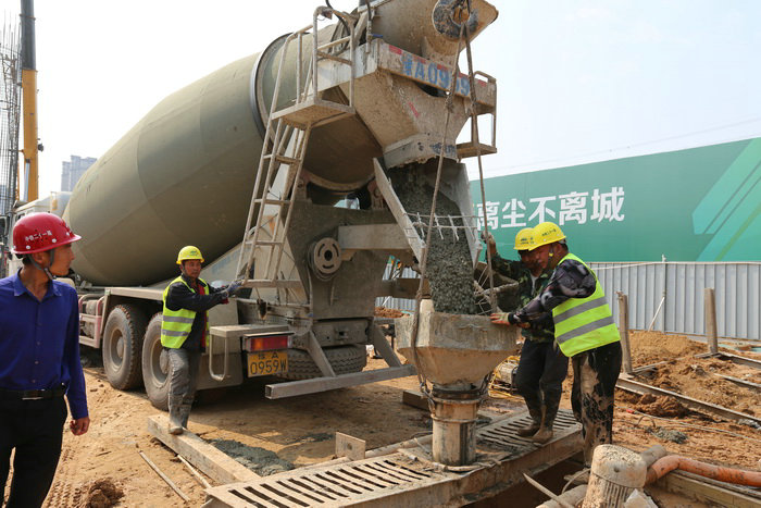 因鄭州市空氣污染嚴重,空氣質(zhì)量在全國排名居尾,地方政府狠抓揚塵管控,項目不具備自建拌合站的條件,只能使用商品混凝土。商混站砂子、石子部分參數(shù)滿足不了質(zhì)量要求,且數(shù)量緊缺,為避免地材影響橋梁工程質(zhì)量,項目部安排專人與商混站對接,嚴控地材質(zhì)量。高架橋全部為現(xiàn)澆梁,每聯(lián)混凝土方量2400~4300方,澆筑時必須連續(xù)不斷進行,混凝土施工前,要做好充裕的混凝土原材備料、人員、機械、養(yǎng)護、防雨等準備工作。