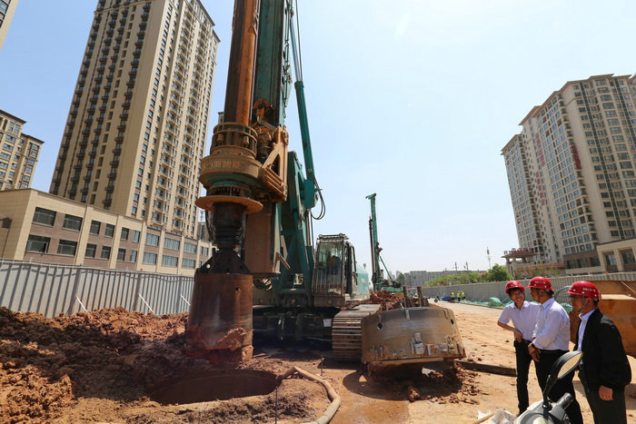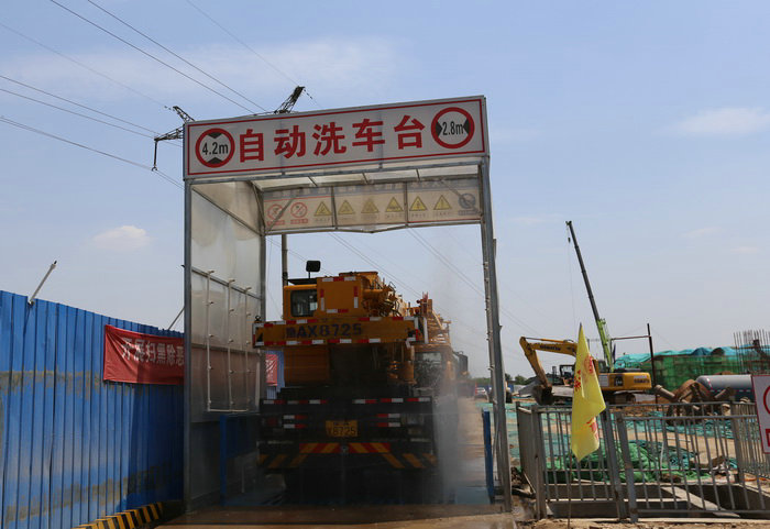 為認真執(zhí)行鄭州市“八個百分之百”環(huán)保要求規(guī)定,項目部安質(zhì)部長冷增鑫說:“我們對施工現(xiàn)場圍擋全封閉,覆蓋現(xiàn)場物料和裸露黃土,配備了土方開挖濕法作業(yè)機械,硬化施工路面,施工出入口安裝洗車臺,安裝揚塵監(jiān)測系統(tǒng)和環(huán)境監(jiān)控系統(tǒng)接入政府相關(guān)部門,嚴格檢查渣土車密封和非道路移動機械是否達標,確保施工符合環(huán)保要求。”