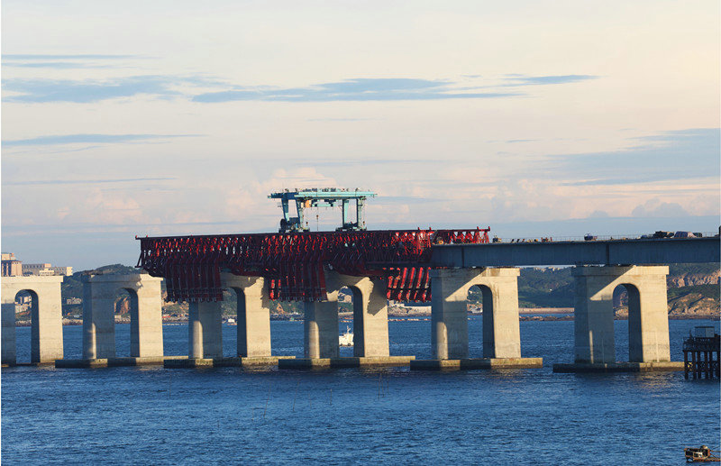 國內(nèi)首臺(tái)臺(tái)風(fēng)區(qū)雙孔連做造橋機(jī)