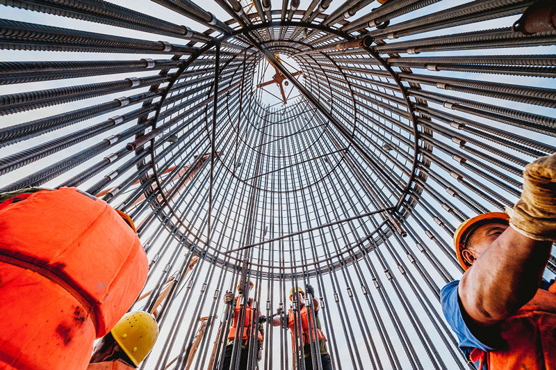 “公鐵兩用大橋集眾多橋梁新技術(shù)、新結(jié)構(gòu)、新工藝、新設(shè)備于一體,橋梁跨度每前進(jìn)一小步,科技水平要跨越一大步”。平潭海峽公鐵兩用大橋作為世界施工難度最大的公鐵兩用跨海大橋,建設(shè)過程中將直接消耗30萬噸鋼筋和266萬噸混凝土,這些材料足以建造8座828米高的迪拜塔。大橋建設(shè)之初,就受到了行業(yè)內(nèi)外的密切的關(guān)注,風(fēng)大、水深浪高、地質(zhì)復(fù)雜、立體交叉干擾是施工過程中要克服的重點(diǎn)和難點(diǎn),其橋址所在的平潭位于海壇海峽與臺(tái)灣海峽之間,與百慕大、好望角并稱世界三大風(fēng)口海域,據(jù)統(tǒng)計(jì),每年6級以上大風(fēng)超過309天,7級以上大風(fēng)超過234天,8級以上大風(fēng)超過123天,最大浪高約9.69米,曾被稱為“魔鬼海域”“建橋禁區(qū)”。尤其是波流力的影響,是常規(guī)江河等內(nèi)河橋梁的10倍以上,建造難度和風(fēng)險(xiǎn)更大。大直徑鋼筋籠吊放作業(yè)