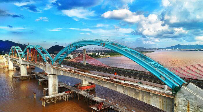 一千多名橋梁參建者歷經一千多個日夜奮戰(zhàn),成功攻克了“深水基礎冬季施工技術”、“鋼圍堰設計、加工、拼裝、下沉、糾偏施工技術”和“大體積混凝土冬季施工技術”等多項科技攻關課題。目前,靈江特大橋連續(xù)梁已經全部合龍,鋼管拱拼裝及頂升混凝土施工已經全部完成,施工任務已經完成99%。