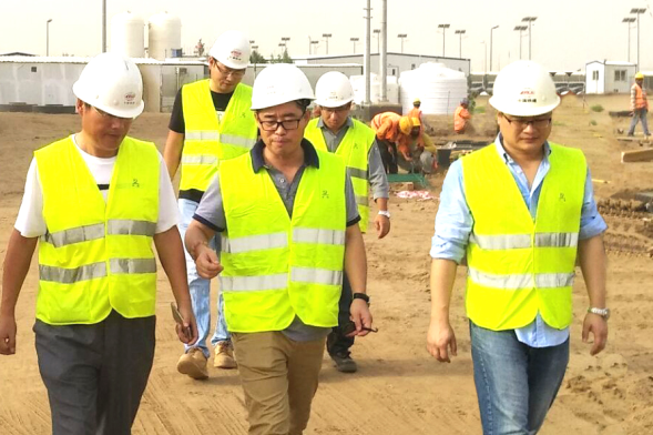 4、中鐵十八局集團(tuán)沙特公司黨工委書記、總經(jīng)理陳德斌(右二)在現(xiàn)場(chǎng)辦公(徐名峰 伍振 攝)