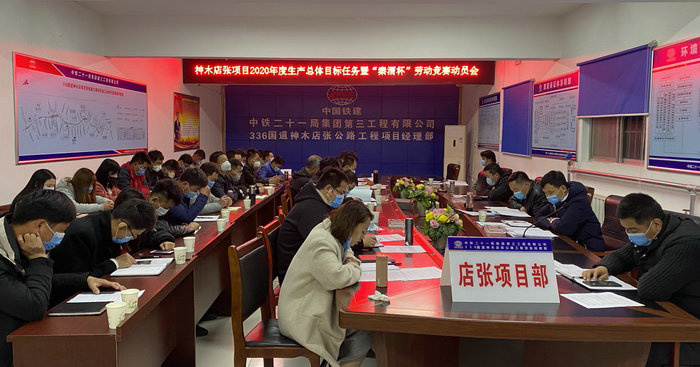 本網陜西榆林3月30日訊(通訊員 劉娟娟 李晴雯)近日,中鐵二十一局三公司神木店張項目部,召開2020年度生產總體目標任務暨“秦渭杯”勞動競賽動員大會,項目部全體人員參加,會議由項目部副經理馬大偉主持。