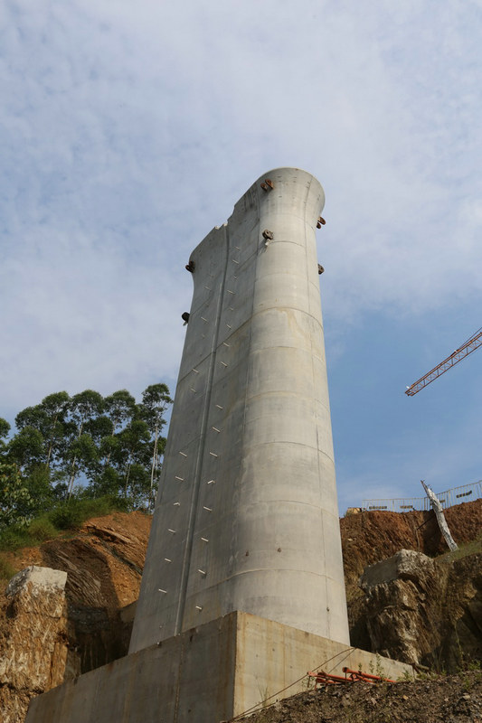 為了施工大橋,唯一的辦法就是對(duì)混凝土進(jìn)行二次倒運(yùn),從大罐車倒到小罐車。為方便倒料,熊寧專門(mén)修建了一個(gè)平臺(tái),租來(lái)一臺(tái)小罐車;大罐車開(kāi)到平臺(tái)上,出料口與小罐車進(jìn)料口對(duì)接,一大罐車混凝土,要分4次才能倒完。