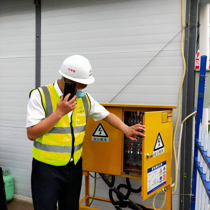 曹元均在檢查配電箱
