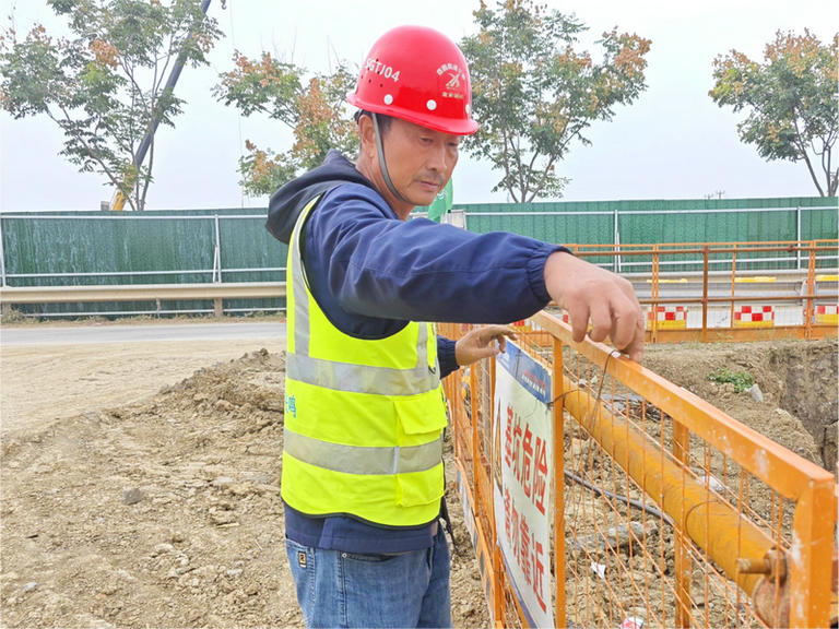 “必須想辦法解決這個(gè)問(wèn)題,項(xiàng)目施工進(jìn)度不能拖,安全措施也要做到位。”羅萬(wàn)龍與當(dāng)?shù)卮逦瘯?huì)取得聯(lián)系,咨詢溝通相關(guān)情況,獲得村委會(huì)同意后,便一家一戶地給村民做安全知識(shí)普及,在每一個(gè)潛在的隱患地點(diǎn)設(shè)置警示牌,拉好警戒線,在施工區(qū)域所在的十字路口安裝指示牌,并在村民早晚出工收工時(shí)間段,蹲守在梁場(chǎng)施工區(qū)域,充當(dāng)現(xiàn)場(chǎng)“指揮官”,一旦發(fā)現(xiàn)村民有橫穿工地的“苗頭”,便及時(shí)勸導(dǎo),掐滅安全隱患的“火苗”。