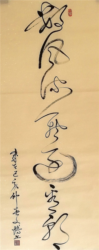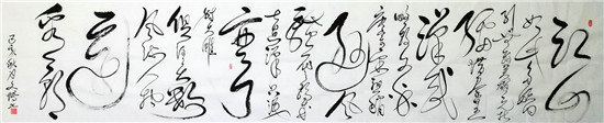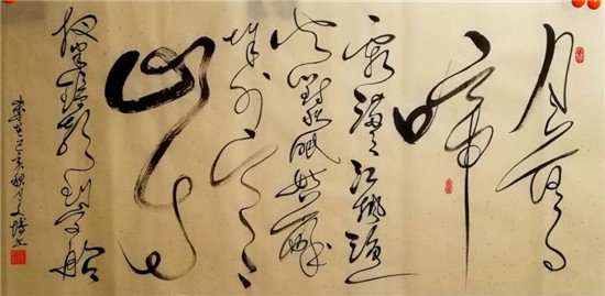 文博遍訪名師,書(shū)法功底深厚,其創(chuàng)作奔放自由,法度嚴(yán)謹(jǐn),喜歡直抒胸臆,無(wú)論何時(shí)何地,素紙鋪開(kāi),濃蘸筆墨,下筆行云流水,神采飛揚(yáng),筆鋒上下游動(dòng),左右擒縱,點(diǎn)畫(huà)無(wú)一處含糊懈怠,法度盡在指腕之間,厚重而不失飄逸,靈動(dòng)而不失莊重。