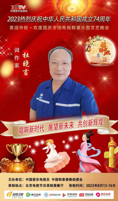 杜曉言,騰訊音樂人,書法愛好者,中國音樂著作權(quán)協(xié)會(huì)會(huì)員,中國音樂文學(xué)學(xué)會(huì)會(huì)員,中國職工音樂家協(xié)會(huì)會(huì)員,中國職工攝影家協(xié)會(huì)會(huì)員。1962年11月山東鄆城生人。1981年10月參加鐵道兵,1984年1月隨鐵道兵集體兵轉(zhuǎn)工,2023年2月退休,現(xiàn)定居濟(jì)寧市。迄今在《中央電視臺(tái)》《內(nèi)蒙古衛(wèi)視》《海南衛(wèi)視》《山西衛(wèi)視》《安徽衛(wèi)視》《河南衛(wèi)視》《菏澤電視臺(tái)》《武威電視臺(tái)》《廣西廣播網(wǎng)》《齊齊哈爾市人民廣播電臺(tái)》《寶雞市經(jīng)濟(jì)廣播電臺(tái)》《原兗州市人民廣播電臺(tái)》《騰訊音樂》《QQ音樂》《上海雨陌文化傳媒有限公司》等演唱作詞歌曲100多首。在《詞刊》《歌曲》《廣播歌選》《解放軍歌曲》《重慶音樂》《上海歌聲》等發(fā)表歌詞500多首,創(chuàng)作歌詞3000多首。作詞歌曲代表作《再唱天路》《枇杷熟了你沒有來》《你開心我快樂》《祖國,我為你自豪》《生生死死都愛你》《遠(yuǎn)方的阿哥你好嗎》等,作詞歌曲《西雙版納的歌謠》《壯鄉(xiāng)三月春光美》等多首作詞歌曲改編葫蘆絲名曲廣為流傳,《我的中國》《祖國,我為你自豪》《最暖的陽光》等多首作詞歌曲參加文藝晚會(huì)并獲獎(jiǎng),《水鄉(xiāng)江南》《走壯鄉(xiāng)》等多首作詞歌曲收入大學(xué)音樂教材。與張雷雷、于天海等合作電影《落潮灣》主題歌《落潮灣戰(zhàn)事》,電視劇《蜀漢戰(zhàn)神傳》主題歌《英雄無淚》、電影《大漠較量》主題歌《駝鈴駱駝草》等多部影視劇主題歌。著有《情感家園》《心靈的旅程》《心中的祝?!贰哆x擇美好》等多部歌詞專著。自學(xué)成才事跡在《人民日?qǐng)?bào)》《工人日?qǐng)?bào)》《百度新聞》《中視網(wǎng)》《中國鐵道建筑報(bào)》等主流媒體報(bào)道~~
